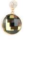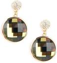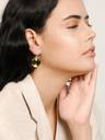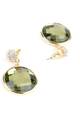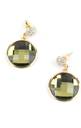 Earrings with golden alloy base Embellished with a round olive green crystal in the middle and tiny white crystals in the stud