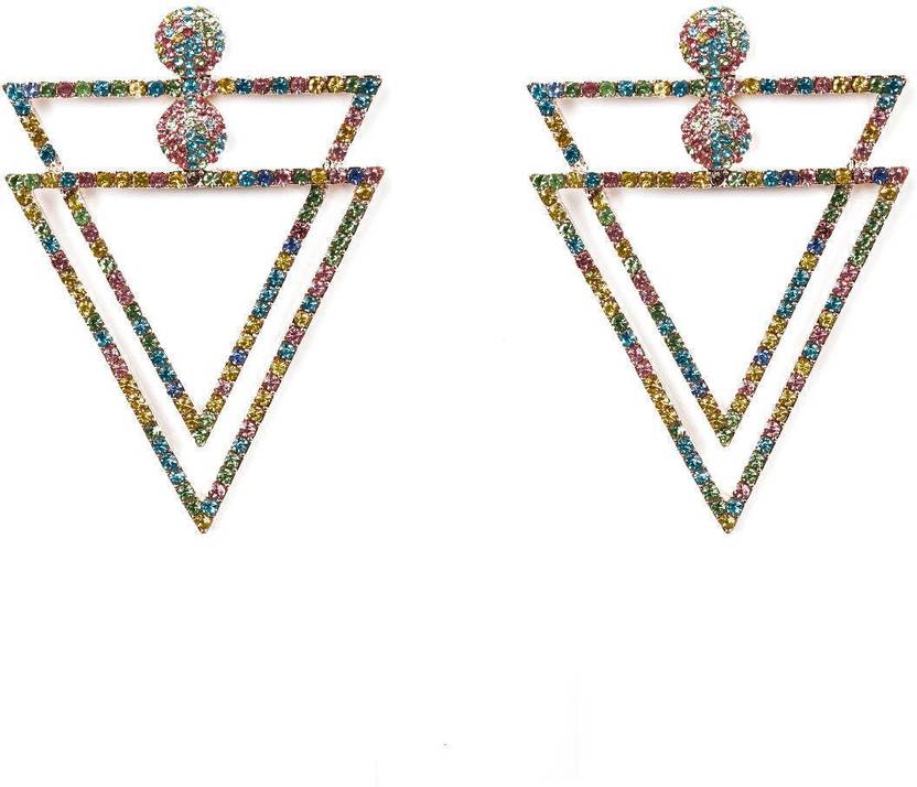 Rainbow crystal double inverted triangle earrings Metal Drops & Danglers