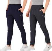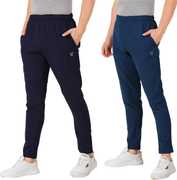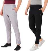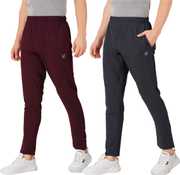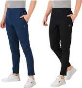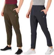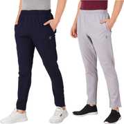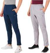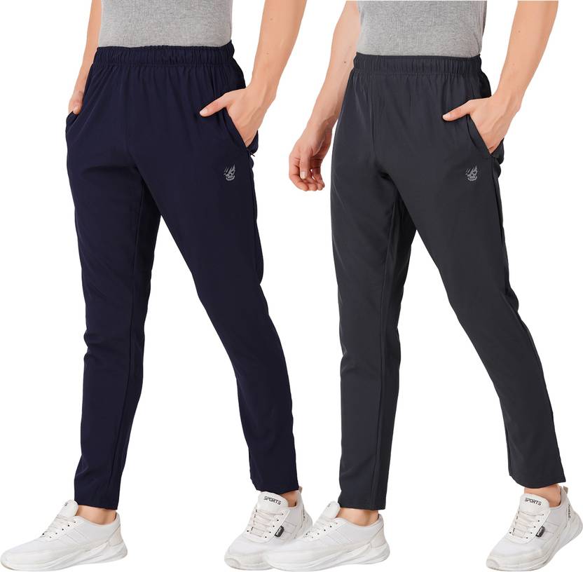 Pack of 2 Men Solid Grey, Dark Blue Track Pants