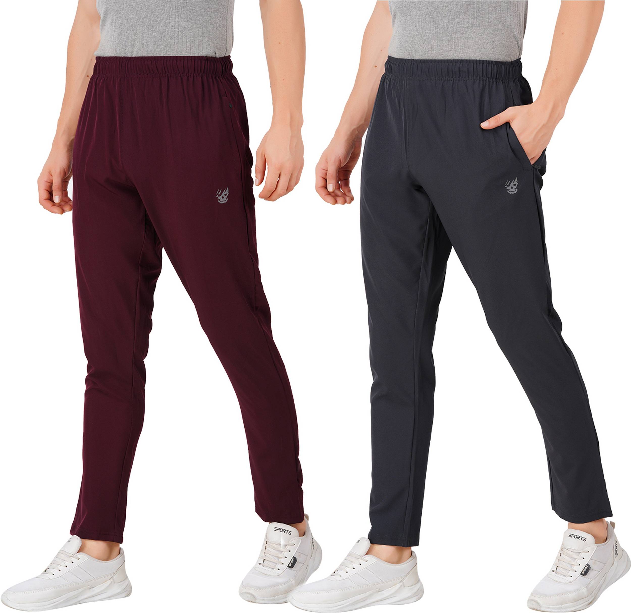 Pack of 2 Men Solid Grey, Maroon Track Pants