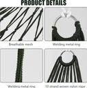 HIGH-QUALITY MATERIAL: Crafted from premium-grade nylon rope, this woven mesh hammock promises unparalleled durability and resistance to wear and tear. The use of sturdy nylon not only ensures its longevity but also significantly enhances the safety of the hammock, making it a reliable choice for anyone looking to relax.GENEROUS DIMENSIONS AND LOAD CAPACITY: With a spacious, this hammock offers ample room for individuals to rest comfortably, whether lying down or sitting. It is engineered to safely support, making it suitable for both children and adults. This generous size and weight capacity ensure that users can enjoy a secure and comfortable resting spot without feeling cramped.VERSATILE OUTDOOR USE: Ideal for a variety of outdoor settings, this nylon rope woven mesh hammock embodies the spirit of summer relaxation. Whether you're planning to camp in the great outdoors, looking for a cozy spot in your backyard, or wanting to enjoy the beach's gentle breezes, this hammock serves as the perfect outdoor accessory. Its versatility makes it a preferred choice for anyone eager to unwind in nature.EXCEPTIONAL CRAFTSMANSHIP AND DESIGN: Exhibiting fine craftsmanship, the hammock features a meticulous metal ring design at both ends, contributing to its aesthetic appeal and functionality. This thoughtful inclusion not only reinforces the hammock's structure but also simplifies the setup process.EASE OF SET-UP: This nylon rope woven mesh hammock is designed with user convenience in mind. Thanks to its intelligently designed metal rings and robust construction, setting up the hammock is a straightforward process that does not require any specialized tools or extensive effort. Whether you're at home or venturing into the wilderness, you can quickly establish a comfortable resting spot to enjoy your surroundings, hassle-free.