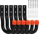 EXCELLENT LOAD-BEARING STRENGTH: Built from thicker carbon steel, these heavy-duty storage hooks can support up to 40 LB. Our advanced bending method ensures they remain sturdy even under substantial weight, making them perfect for storing heavy items in your garage, workshop, or warehouse. Take control of your space by using these hooks for your most demanding hanging tasks.EASY INSTALLATION WITH PRE-CUT HOLES: Installation is a breeze with our garage hooks, thanks to the included 12 wall anchors and 12 wood screws. Each hook features pre-cut holes on its base, allowing for swift and secure installation. Attach them effortlessly to any wall, ensuring your items remain securely in place without slipping. Simplify your setup and get organized today.VERSATILE WALL HOOK: These heavy-duty hooks are incredibly versatile, capable of hanging a wide array of items like ladders, bikes, chairs, shovels, and more. Suitable for use in garages, gardens, kitchens, and workshops, they help maximize your storage space. Declutter your environment by securely hanging tools, gardening equipment, and hoses with these reliable hooks.SCREW MOUNTED UTILITY WALL HOOK: Our secure metal wall hooks are thoughtfully designed for a firm grip on various items. The bended grips ensure reliable holding for gardening tools, power tools, and accessories. The capped hook tips eliminate hazards from sharp ends, providing safety and peace of mind. Organize your tools efficiently and safely with these sturdy utility hooks.PREMIUM METAL MATERIAL: Crafted from premium metal, these durable utility hooks promise reliability and longevity. The fine finish not only adds an aesthetic touch but also offers enhanced protection against corrosion and wear. Invest in these robust wall hooks to meet all your storage needs in your garage, workshop, kitchen, or garden, and enjoy lasting functionality.