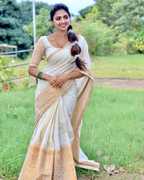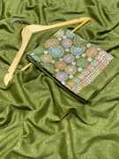This Peach saree comes with a matching Maroon stitched blouse available in sizes 38 to 46, making it a ready-to-wear and perfect choice for festive and party wear occasions. The saree features embroidery with floral embroidered motifs and a contrasting green border that adds a classy and royal touch to the overall look.The soft and lightweight fabric ensures , allowing it to be worn for long hours with ease. The beautifully stitched blouse further enhances the overall appearance and elegance of the saree.