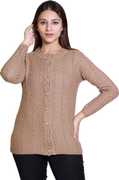 Ogarti Self Design Round Neck Casual Women Black Sweater