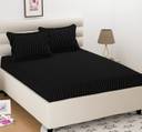 OICHY Microfiber Double Flat 280 TC Striped Bedsheet (Pack of 1, Black)
