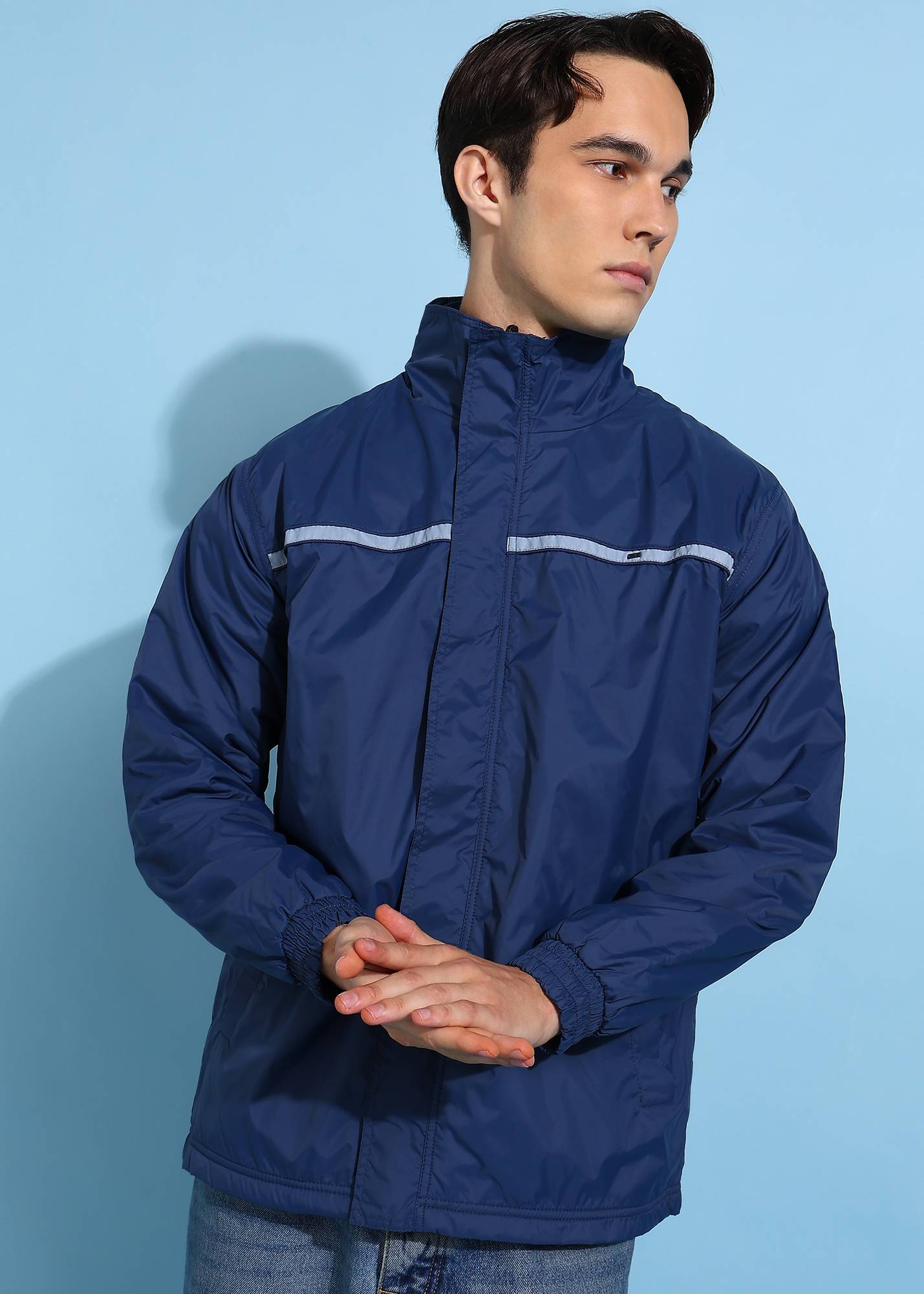 Navy Solid Reversible Fashion, 2 Pockets ,Has A Zip Closure, Long Sleeves, Straight Hemline, Fleece Lining