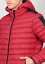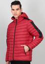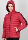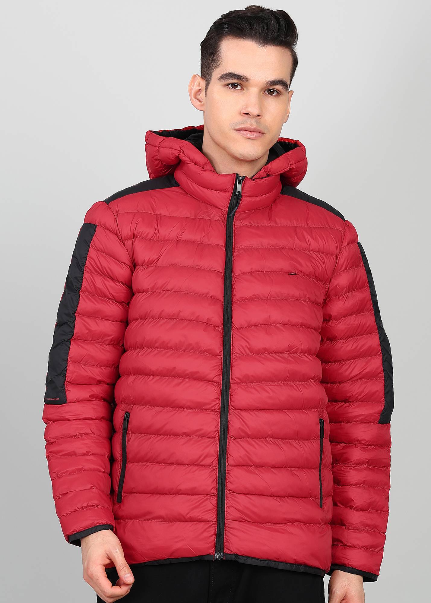 Red Solid Lightweight Puffer Jacket, Has A Hooded, 2 Pockets ,Has A Zip Closure, Long Sleeves, Straight Hemline, Polyester Lining