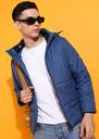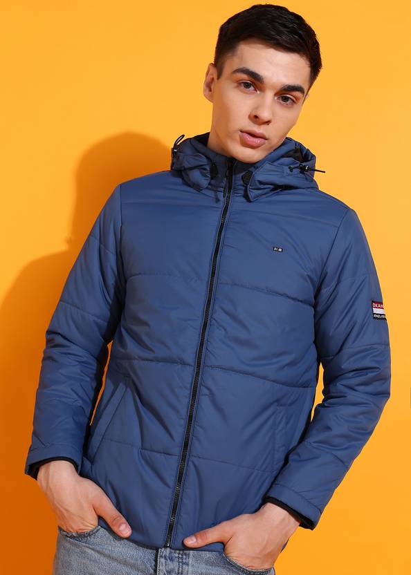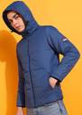 Denim Solid Lightweight Puffer Jacket, Has A Hooded, 2 Pockets ,Has A Zip Closure, Long Sleeves, Straight Hemline, Polyester Lining