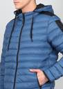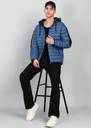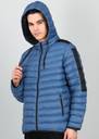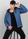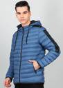 Blue Solid Lightweight Puffer Jacket, Has A Hooded, 2 Pockets ,Has A Zip Closure, Long Sleeves, Straight Hemline, Polyester Lining