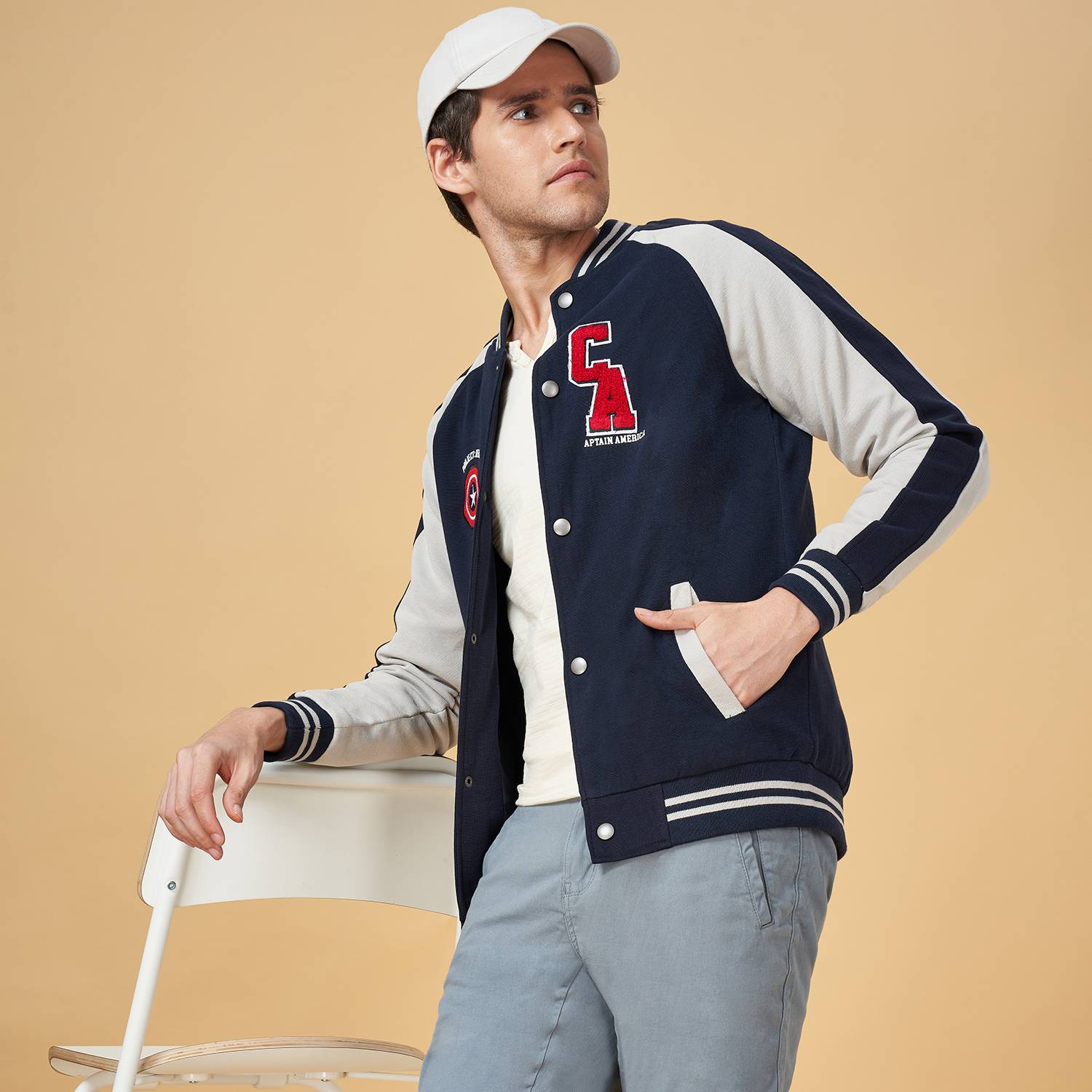 OKANE MENS SOLID POLYESTER VARSITY JACKET