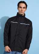 Black Solid Bomber, Has A Hooded, 2 Pockets ,Has A Zip Closure, Long Sleeves, Straight Hemline, Nylon Lining
