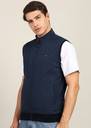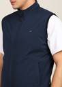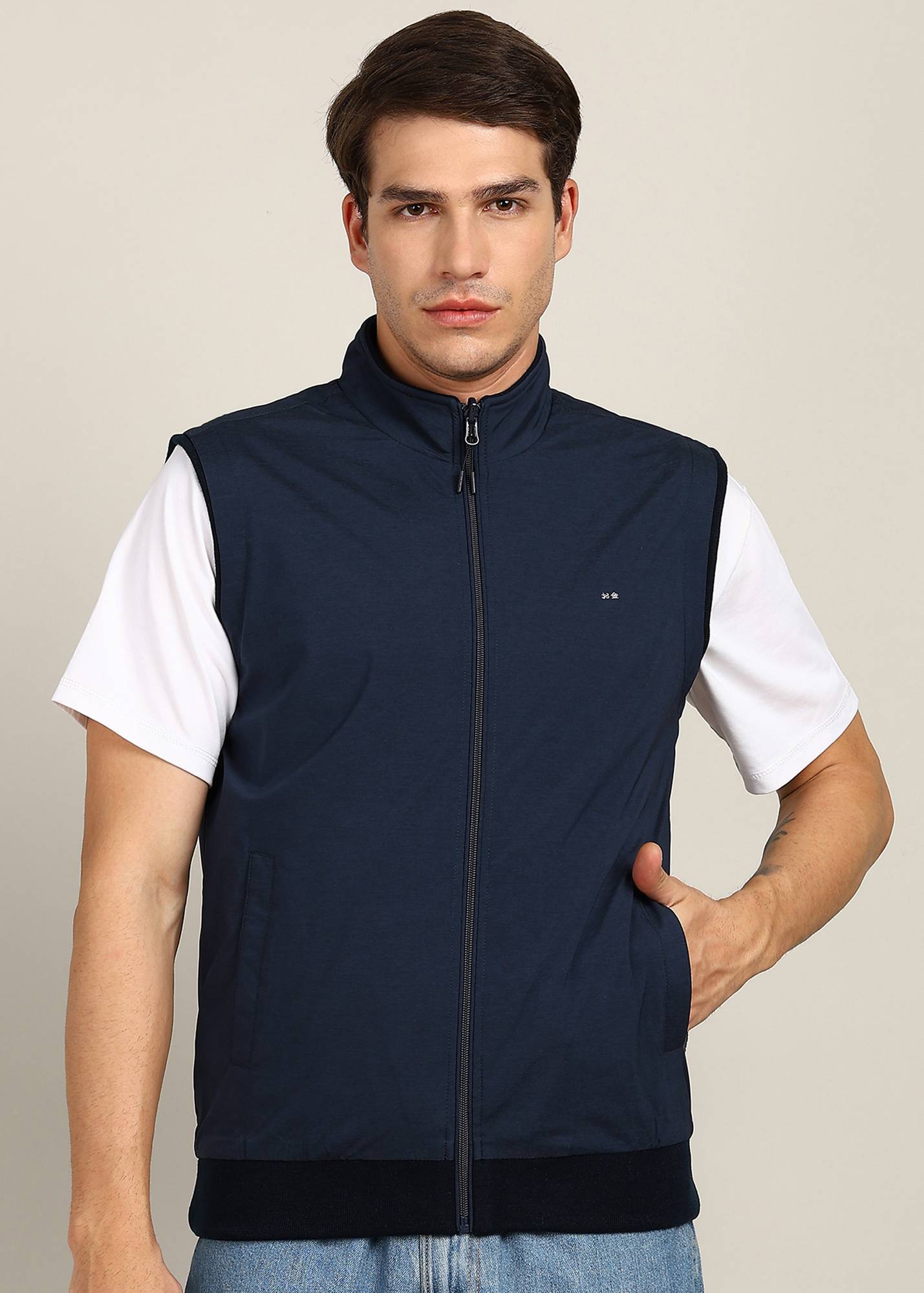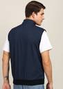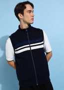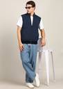 Blue Solid Reversible Padded Jacket, Has A Mock Collar, 2 Pockets ,Has A Zip Closure, Sleeveless, Straight Hemline, Polyester Lining