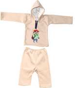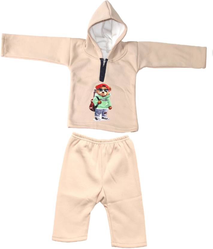 Unisex Kids Winter Wear Fleece Thermal Innerwear Top & Full Pant Woolen Warmer Combo Set With Cap for Girls Boys-Pack Of 01_0-3 Moths,Beige