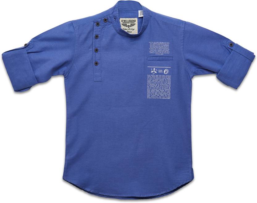Oks Boys Boys Regular Fit Self Design Mandarin Collar Casual Shirt