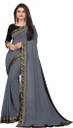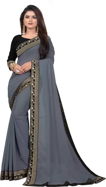 Georgette saree, plain saree with lace work, Soft Fabric, Fabric is little Transparent Which Enhance Your Look, With Blouse Piece