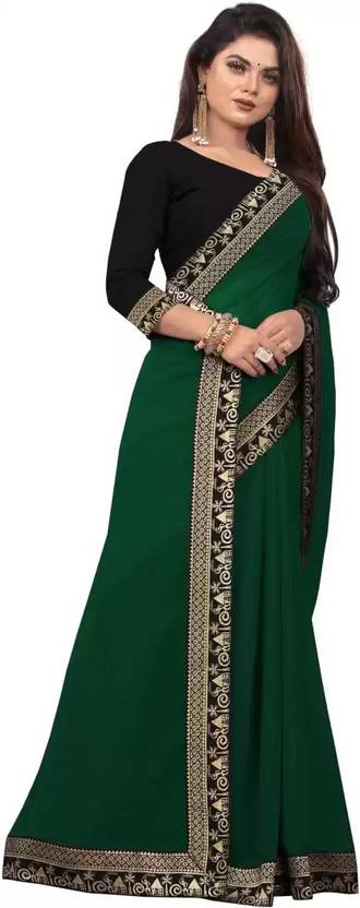 Georgette saree, plain saree with lace work, Soft Fabric, Fabric is little Transparent Which Enhance Your Look, With Blouse Piece