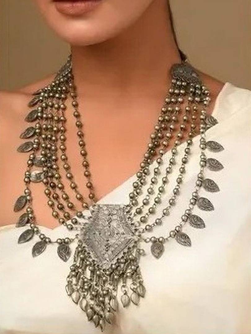 Okuone Presents Their Luxurious Collection of Latest Oxidized silver jewellery set stylish necklace set for women. This Is a Traditional jewellery sets which includes 1 Mang teeka,2 earings and one necklace. This set represents religious palkiand has set has a handicraft work. This set is Made from fine quality hand picked material, perfect necklace for casual or wedding party wear. This set has shining silver look and made of Best Quality. Glamour Galleria focuses on customer satisfaction and product quality in the highly competitive market. This set is suitable for all kind of occasions and is Delivered in a premium box of Glamour Galleria as shown in the images.