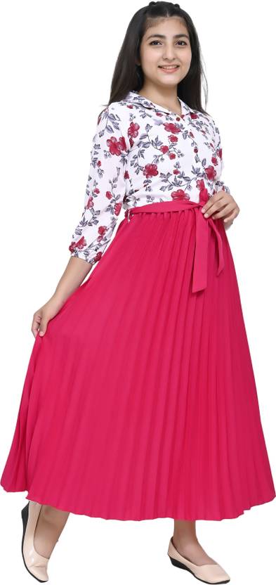 Girls Maxi/Full Length Casual Dress (Pink, 3/4 Sleeve)