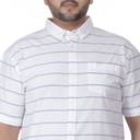 Slim through the sleeves and chest, with a tailored waist. Shirt hits below waist.