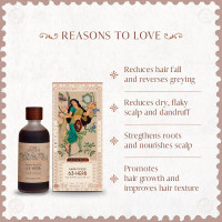 This hair oil helps to reduce hair fall and can aid in reversing greying. It also promotes more youthful-looking and thicker hair. This oil also prevents brittle, dry scalp and dandruff. The nourishing ingredients in this oil work to soothe and hydrate the scalp and lower flakiness. The potent formula of this oil reinforces hair roots and stimulates the scalp. This oil also encourages hair follicles and promotes healthy hair growth. This hair oil aids you in achieving thicker, fuller hair. The mixture of oils and herbs also improves hair texture, which makes it more manageable, softer, and silkier.