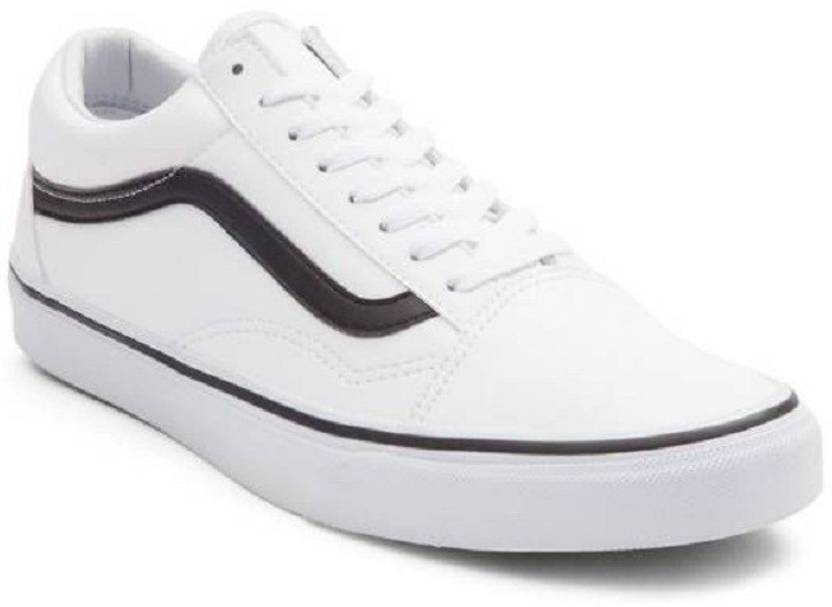 Van Old Skool Canvas White Sneakers For Men (White, Black , 7)