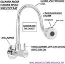 Oleanna Flora (Brass) Kitchen Spray Spout Flexible Sink Cock with Flange and Brass body faucet | Aerator & Shower Spray Bib Tap Pillar Tap Faucet (Wall Mount Installation Type)