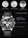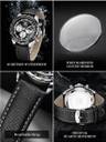 Versatile Wrist Watch:This watch is designed for successful men who value practicality.The original quartz movement runs accurately and stably, and the multifunctional sub-dial provides chronograph functions, dual time zones, date and moon phase display.
