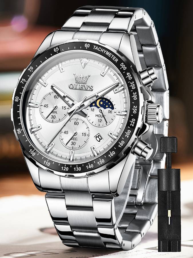 Versatile Wrist Watch:This watch is designed for successful men who value practicality.The original quartz movement runs accurately and stably, and the multifunctional sub-dial provides chronograph functions, dual time zones, date and moon phase display.