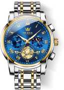 Analog Quartz Chronograph Watches:Original imported quartz movement with longer battery life. The dial has two sub-dials for chronograph minutes and moon phases, quality assurance, stable and accurate timekeeping, it is a must-have watch for mature men.
