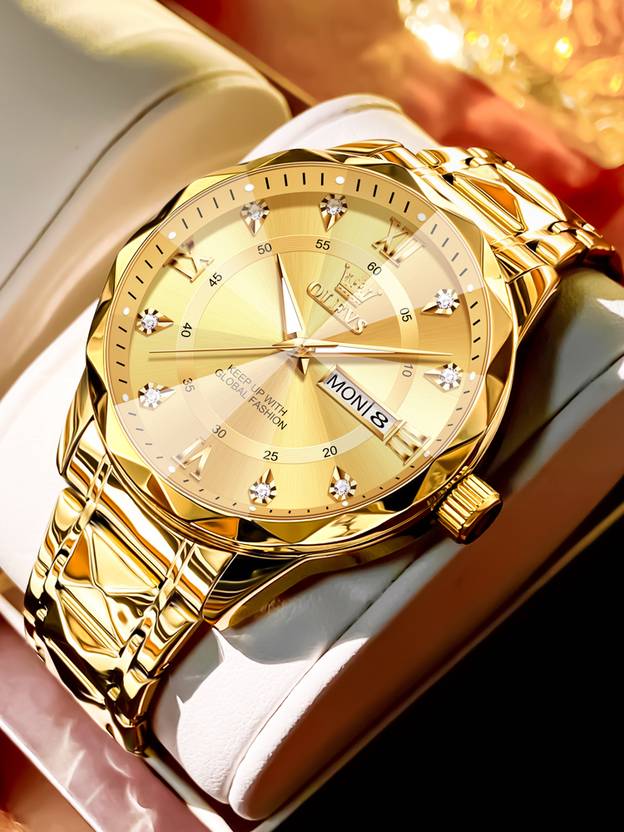 Classic Analog, Big Size Dial, Water resistant, Time & Date, Premium, Gold Tones, Gold metal strap