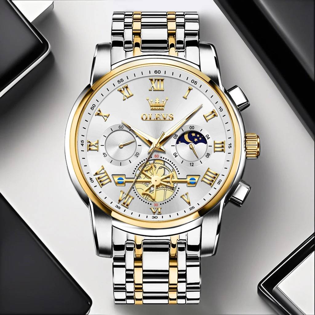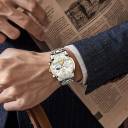 Analog Quartz Chronograph Watches:Original imported quartz movement with longer battery life. The dial has two sub-dials for chronograph minutes and moon phases, quality assurance, stable and accurate timekeeping, it is a must-have watch for mature men.