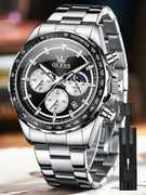 Versatile Wrist Watch:This watch is designed for successful men who value practicality.The original quartz movement runs accurately and stably, and the multifunctional sub-dial provides chronograph functions, dual time zones, date and moon phase display.