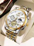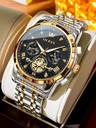 Water resistant, Skeleton Dial, Premium Watches, Metal Strap, Chronographs, Big Size Dial, Classic Analog, Two tone, Time & Date, Black Dial