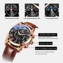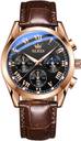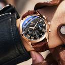 Gorgeous Black dial on Rose Gold Case. Crystal: Hardened Mineral glass. Comfortable Genuine Leather strap. Stainless steel Case. Fully Functional Chronographs (Stop Watch, 24-Hour display). Dial diameter: 38 mm (Small size); Case Thickness: 11 mm; Weight: 57 g. Water Resistance: 30 meter – resistant to rain and accidental splashes. For luminous display kindly expose the dial to a flashlight for 2–4 mins after you receive the watch.