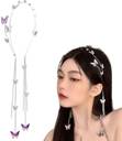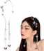 OLLIVOO 1 Pcs Rhinestone Headband Bridal Wedding Butterfly Headband Crystal Tassel Hair Chain (Silver)