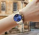Diamond Studded Craft Two Tone Auto Calendar Stainless Steel Strap Quartz Waterproof