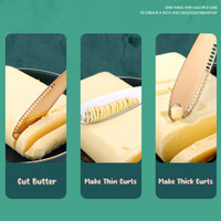 Courtesy of its unique design, this butter knife allows you to cut butter into thin or thick curls, adding decorative flair to your culinary creations. So, whether you're preparing breakfast toast or garnishing a dish, this butter knife provides an ideal tool for achieving professional-looking results.
