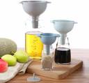 3 Funnels (different sizes and calibers) + filter screen, which can be used in a variety of scenarios,ideal for filling, reducing and sieving wine, oil, sauces, jam, sugar or even flour, You can easily distinguish the different sizes of the kitchen funnel by the colours. It's not only a very practical utility, but also an artistic decor in the kitchen, A detachable strainer is also included in order to filter solid from liquids. Just place the strainer in the funnel, its holes are perfectly to filter and sieve larger particles such as beans, fruit seeds or other, Completed with handy storage hanging tab, the funnels are easily nested together for compact storage, save space for your kitchen. Oil resistant plastic, easy to clean, These funnels are made of 100% food grade BPA-free heat-resistant plastic materials, environmentally friendly and odorless, no need to worry about funnels harming your family's health.