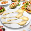 Sturdy structure, these large serving spoons are made out of quality stainless steel, solid construction and durable for long time use, Perfect size, not too big and not too small, perfect size for serving, large spoon head allows ample space for serving all types of food, Well crafted, mirror polish surface always maintain shiny, simple yet elegant, the gold color would make your table setting special, Nice weight, these modern serving spoons have a nice weight to them, ergonomic handles make serving easy, comfortable to hold and use, Effective, these big serving spoons work effectively in kitchen home use, buffet, restaurant, catering, hostess, banquet, holiday meal, potluck and cafeteria