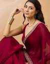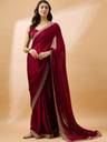 Solid/Plain, Woven Bollywood Chiffon Saree (Maroon)