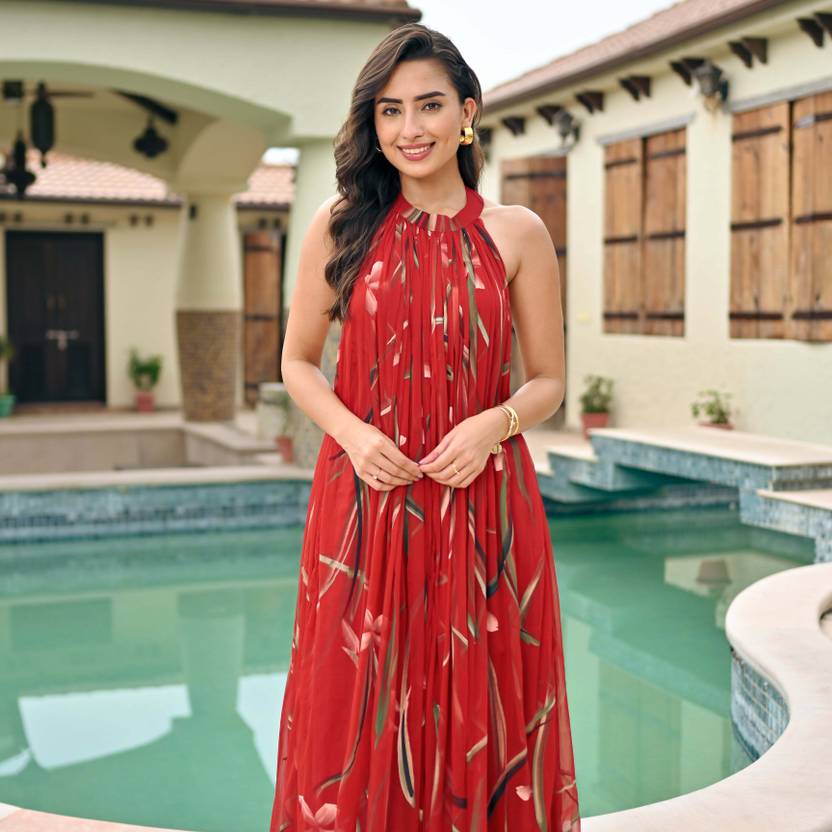 Cotton Silk Stitched Anarkali Gown (Red)