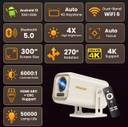 Portable Projector, Native 1920*1080P Support 4K Parse with Dual-Band WIFI6 5G Wireless 5.0 Bluetooth Android 13, 600ANSI, 270° Rotatable, Auto Keystone Correction Video Projector