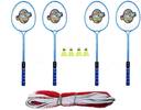 4 Raquets, 4 PIECE PLASTIC SHUTTLECOCKS, 1 PIECE BADMINTON NET