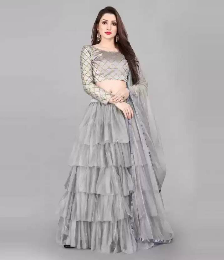 Self Design Semi Stitched Lehenga Choli (Grey)