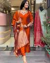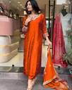 Elevate your festive wardrobe with this elegant ethnic set, featuring intricate embroidery and a beautifully detailed neckline. The ensemble blends tradition with modern flair, making it ideal for celebrations and special gatherings.