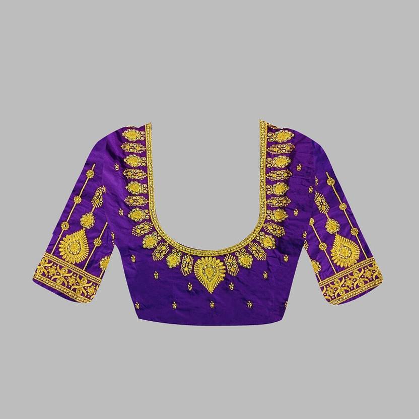 OMINI FASHION Unstitched Art Silk Blouse Material Embroidered