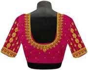 OMINI FASHION Unstitched Art Silk Blouse Material Embroidered