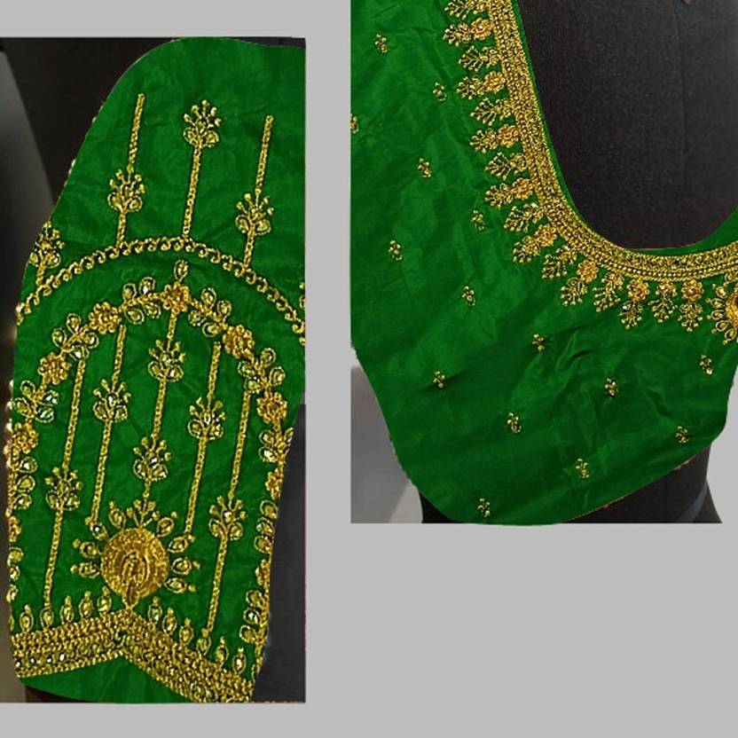 Best qualitycomputer work blouse piece of 1 meter length on aaku pattu fabric with hand work blouse. Unstitched blouse piece. Womens wear new arrival aaku pattu fabric embroidery work unstitched blouse piece. It is designed specially to wear in special occassions. It gives a special cool and attractive look on you. blouses to wear on special occassions like mehendi vibes, engagement evenings,cocktail paries, pooja rites. womens wear blouse pieces. unstitched blouse piece. Colour may be look difference, becasue of mobile view and photo shoot.