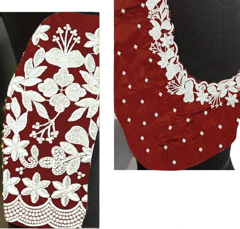 OMINI FASHION Unstitched Art Silk Blouse Material Embroidered
