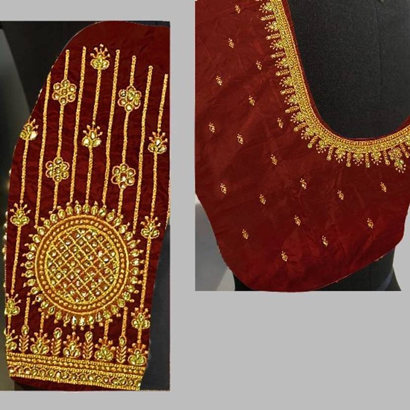 Best qualitycomputer work blouse piece of 1 meter length on aaku pattu fabric with hand work blouse. Unstitched blouse piece. Womens wear new arrival aaku pattu fabric embroidery work unstitched blouse piece. It is designed specially to wear in special occassions. It gives a special cool and attractive look on you. blouses to wear on special occassions like mehendi vibes, engagement evenings,cocktail paries, pooja rites. womens wear blouse pieces. unstitched blouse piece. Colour may be look difference, becasue of mobile view and photo shoot.